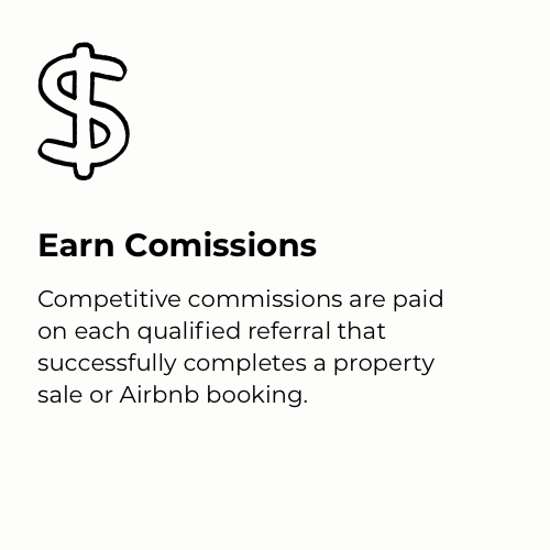 Earn competitive commission by connecting clients with the right property opportunities. Our refferal program makes it simple to generate income from property sales and Airbnb agent introductions.